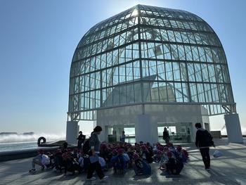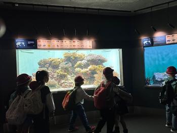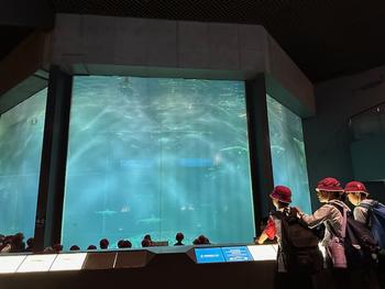 2年生が生活科見学に出掛けています。葛西臨海水族園で、グループに分かれて見学です。お互いに声をかけ合いながら、じっくりよく見ています。
