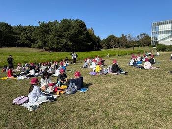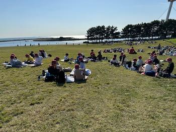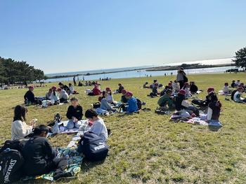 見学が終わり、海辺に移動してきました。これから待ちに待った昼食です。お弁当の用意、ありがとうございました。昼食のあとは学校に戻ります。